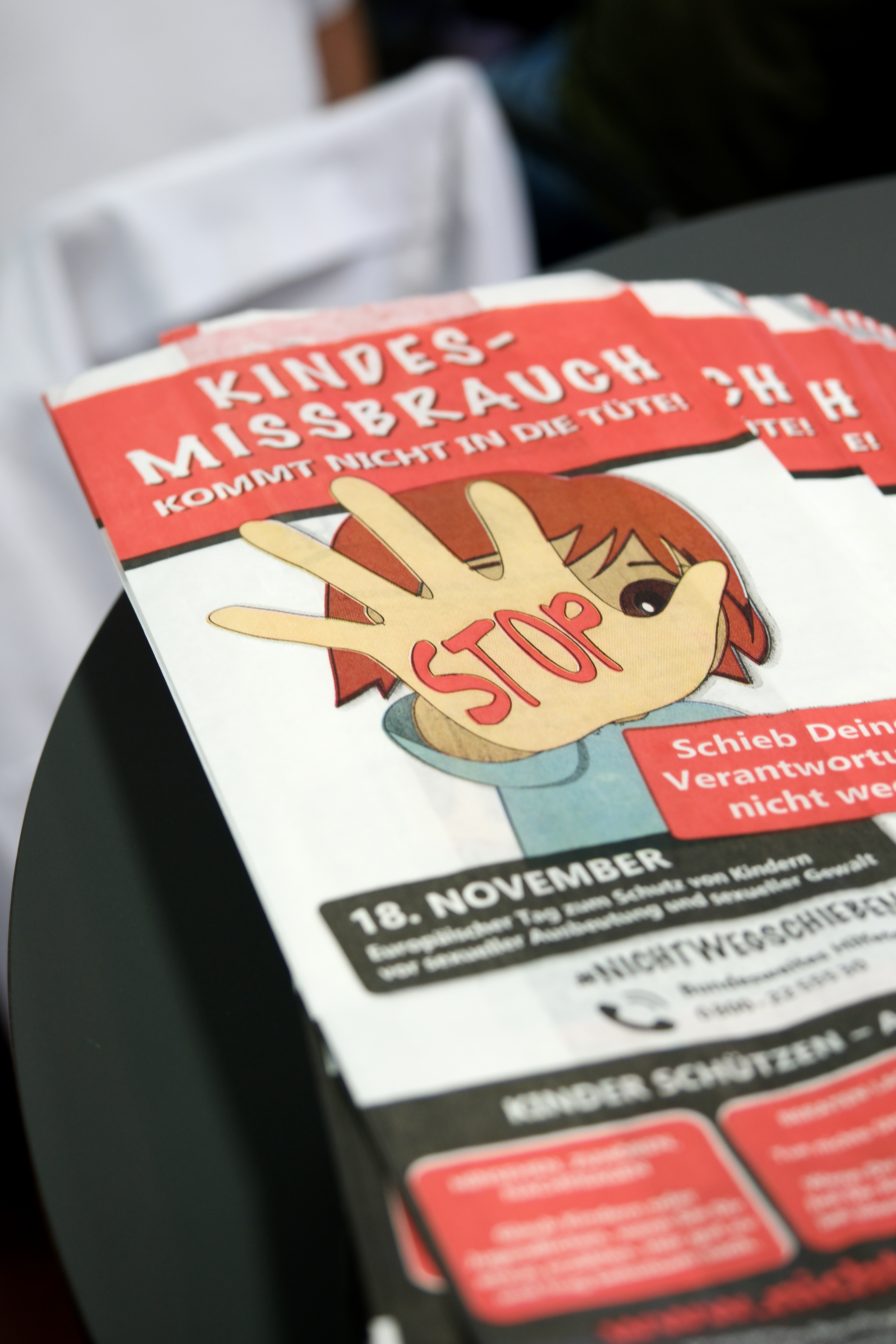 Die Brötchentüten-Aktion „Kindesmissbrauch kommt nicht in die Tüte“.