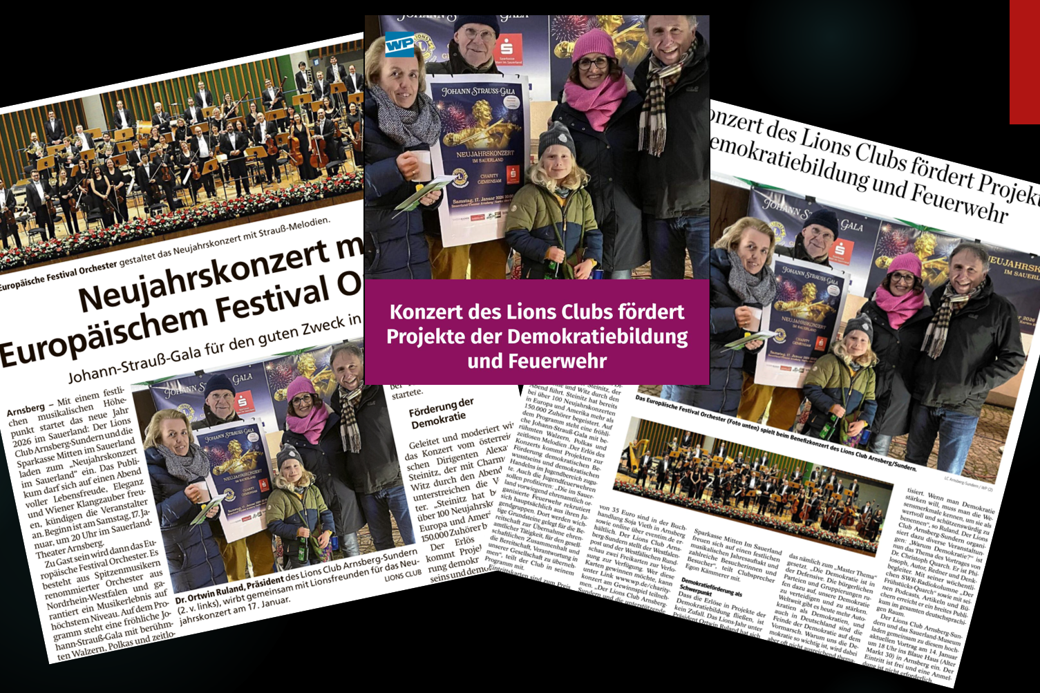 Mit einem festlichen musikalischen Höhepunkt startet das neue Jahr 2026 im Sauerland: Der Lions Club Arnsberg-Sundern lädt gemeinsam mit der Sparkasse Mitten im Sauerland zum „Neujahrskonzert im Sauerland“ ein.